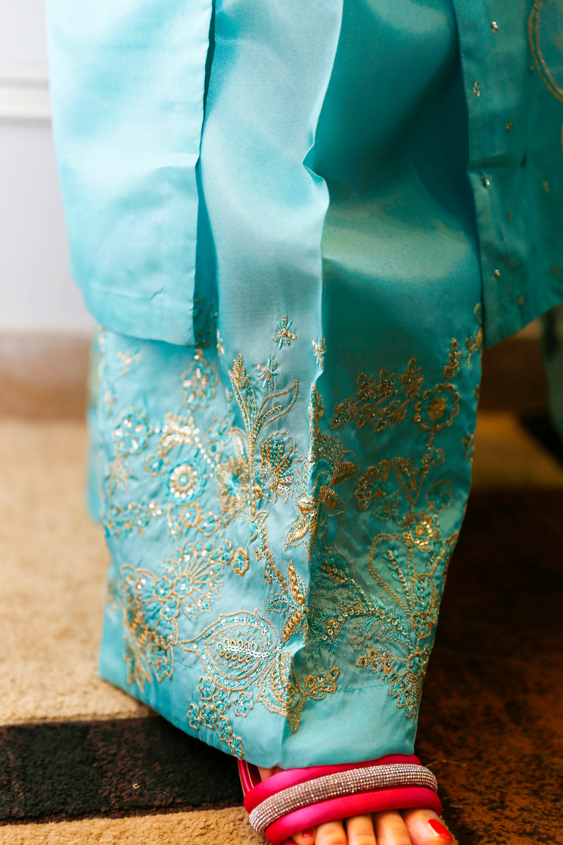 - Type: This is a ready-to-wear, three-piece stitched set in straight-cut kurta with pant.